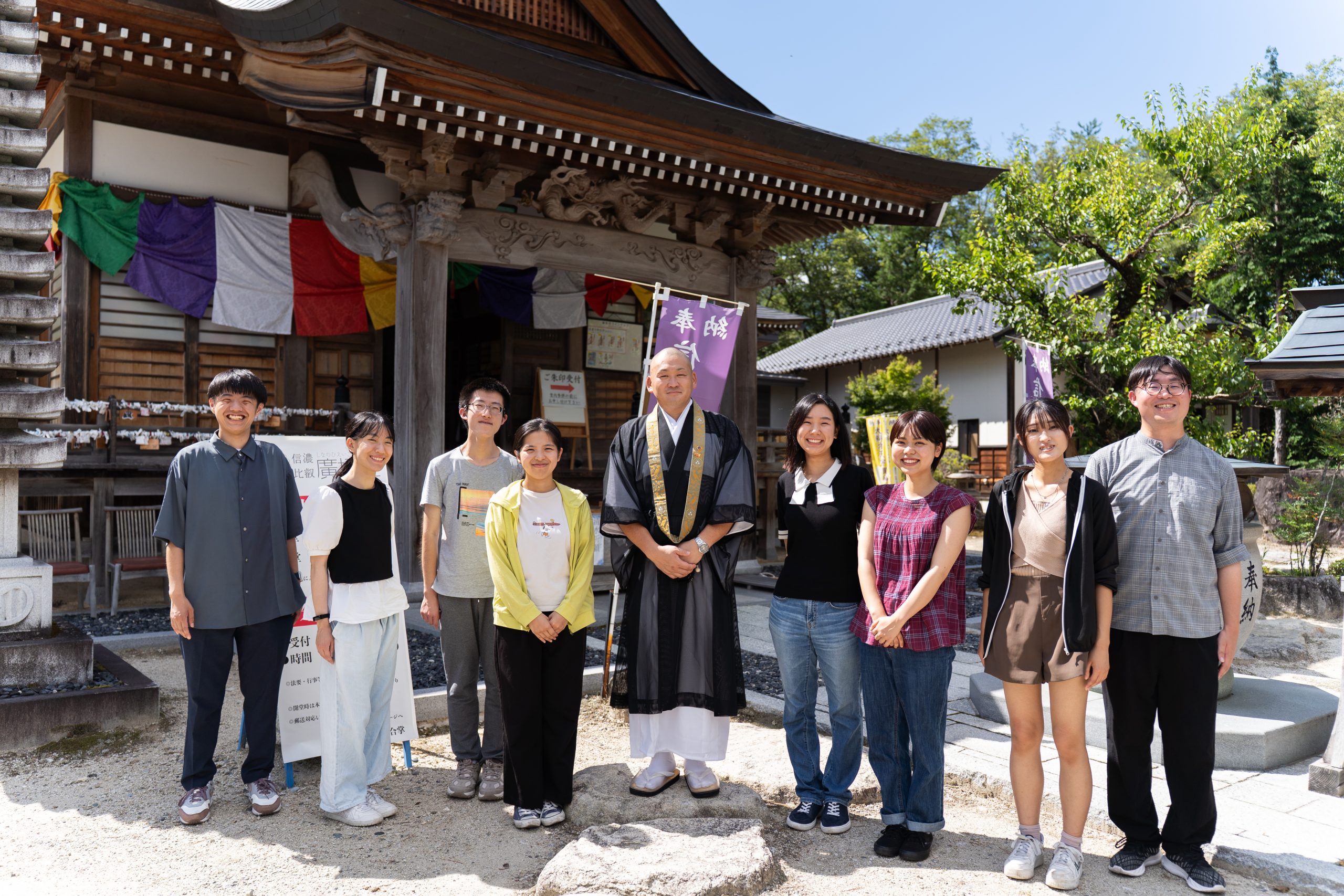 古代の東山道を体感した学生たちは、一宇のお堂へたどり着きました。