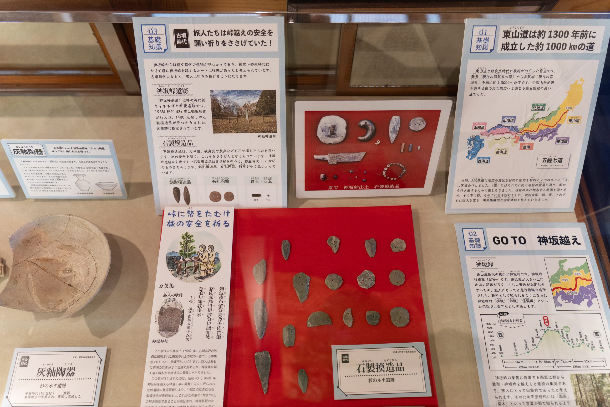「このように神坂峠周辺で大量に出土する石製模造品は、「神坂峠を無事に越えることができるように」と祈る人々によって捧げられたものだと考えられています。この出土量の多さから、先人たちが困難に立ち向かいながら難所を超えていったのかが伝わってくるかと思います。」