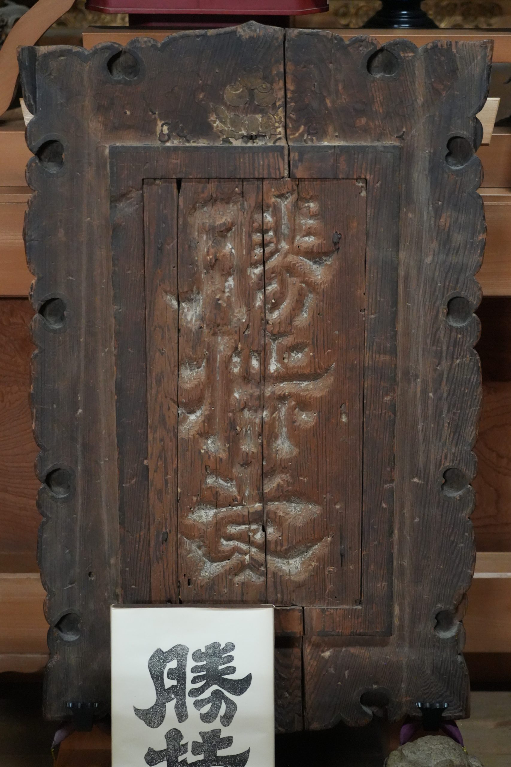 「ただ、その歴史の糸口になる寺宝がございます。それがこちらに展示している寺号を刻んだ額です。この額の文字は、三蹟の一人として有名な平安時代の公卿である小野道風卿によるものと伝えられ、もともとは仁王門に掲げられていました。」