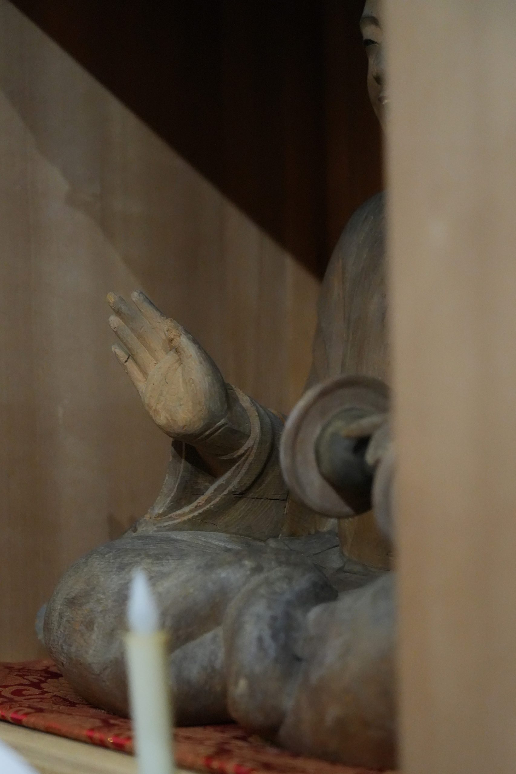 「御本尊様をおまつりする厨子のまわりには、四方を護る四天王様をおまつりしています。こちらのお像は平安時代に造立された仏様で、彩色は江戸時代頃に施されたと考えられています。最近調査をしていただいたので、もしかしたら何か新しい発見があるかもしれませんね。」