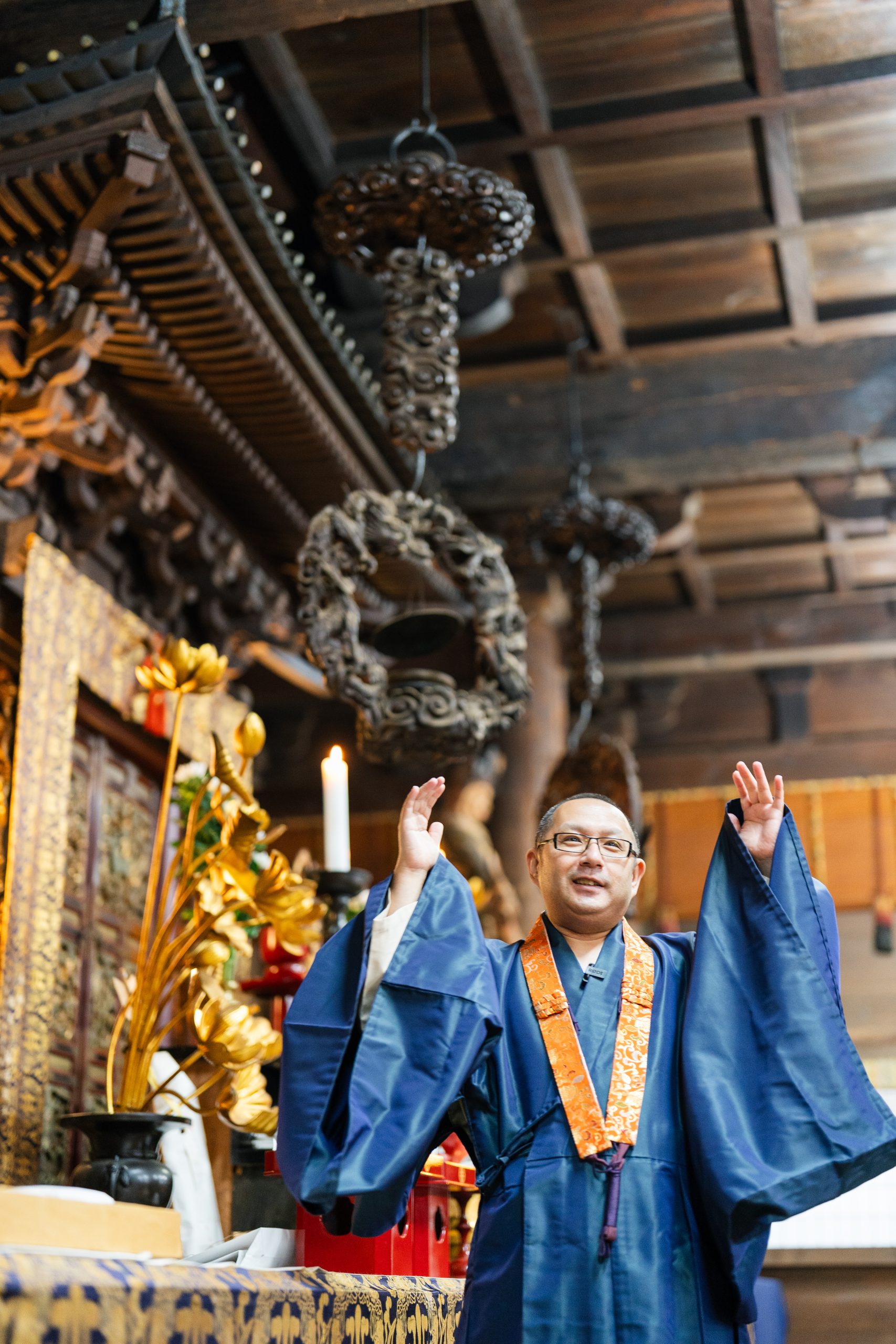 「また、数え年で1歳、つまり満0歳のお子さんが清水寺で御祈祷された際は、こちらの大仏様の前での写真を許可しています。お子さんを交えてご家族やパートナーの皆さんのこれからの人生が幸多きものになりますようにという想いでこの撮影を始めたのですが、なぜか、ご家族やパートナーの方々がお子さんと写真を撮るのではなく、私たち僧侶とお子さんとの写真となることがほぼ百バーセントです(笑)」
