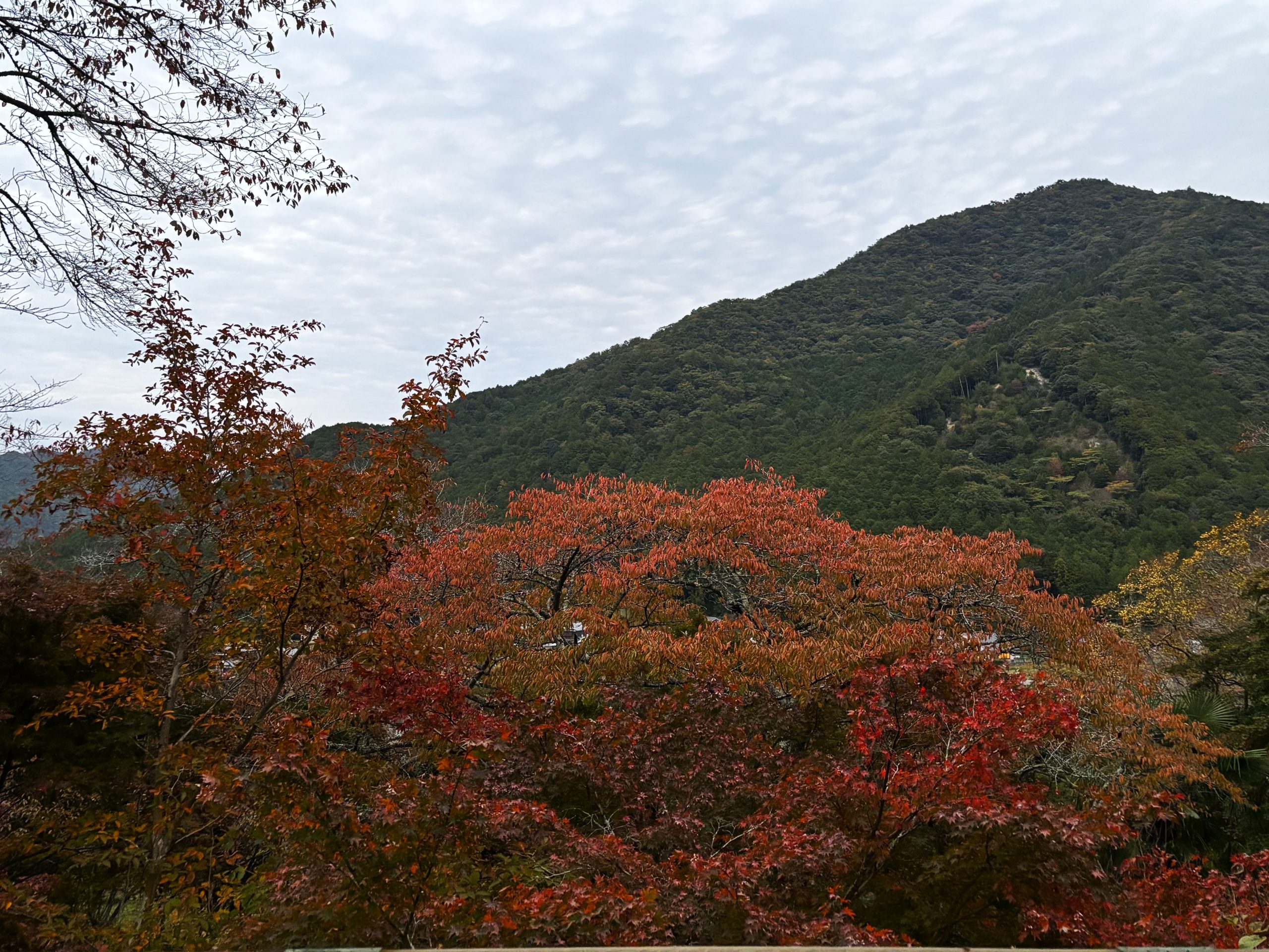 客殿へ入ると、薄暗い中に紅葉の赤色が映え、穏やかで優しい景色が広がっていました。
