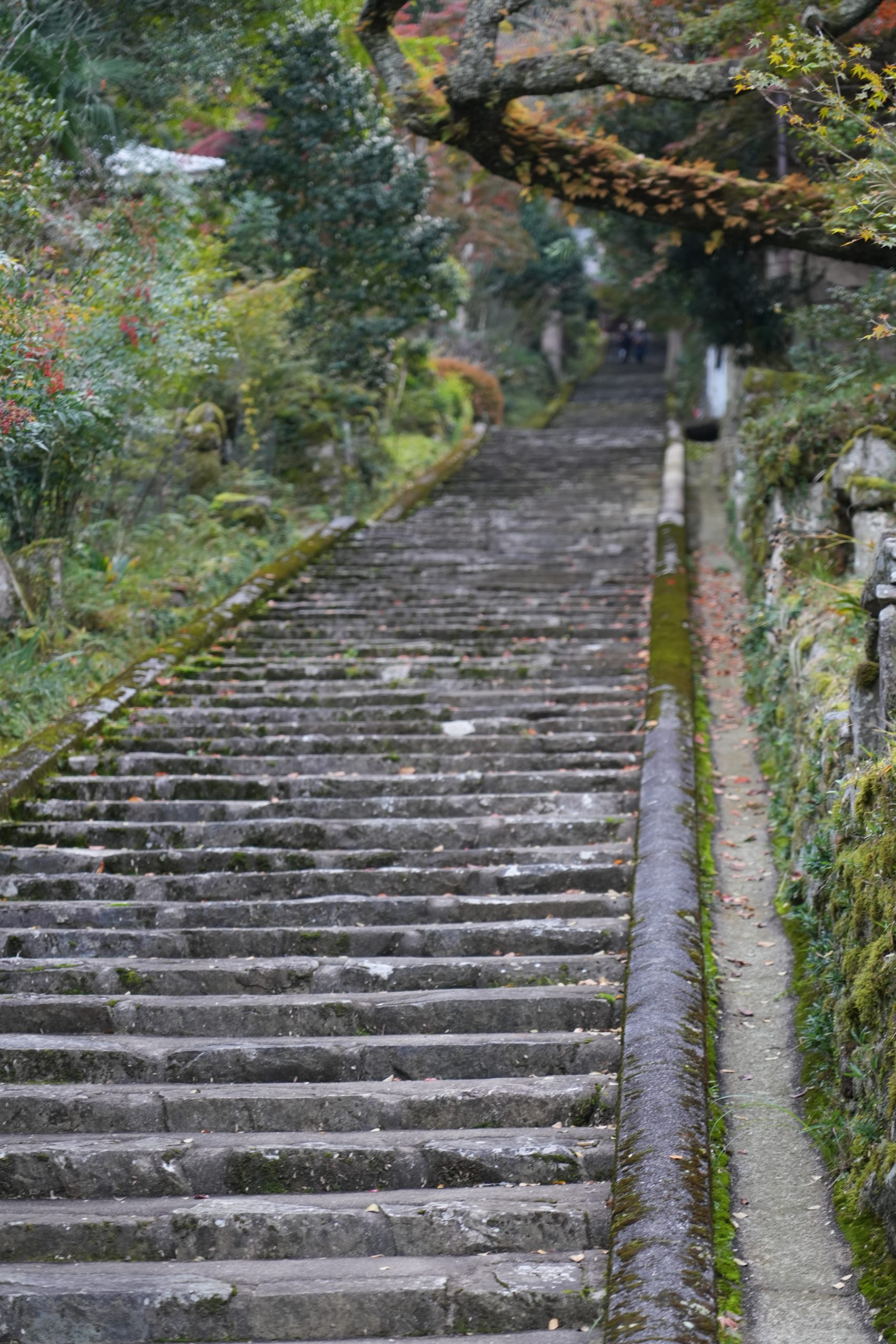 ふと目線を上げると、一直線に本堂へと延びる石段が学生たちを驚かせます。