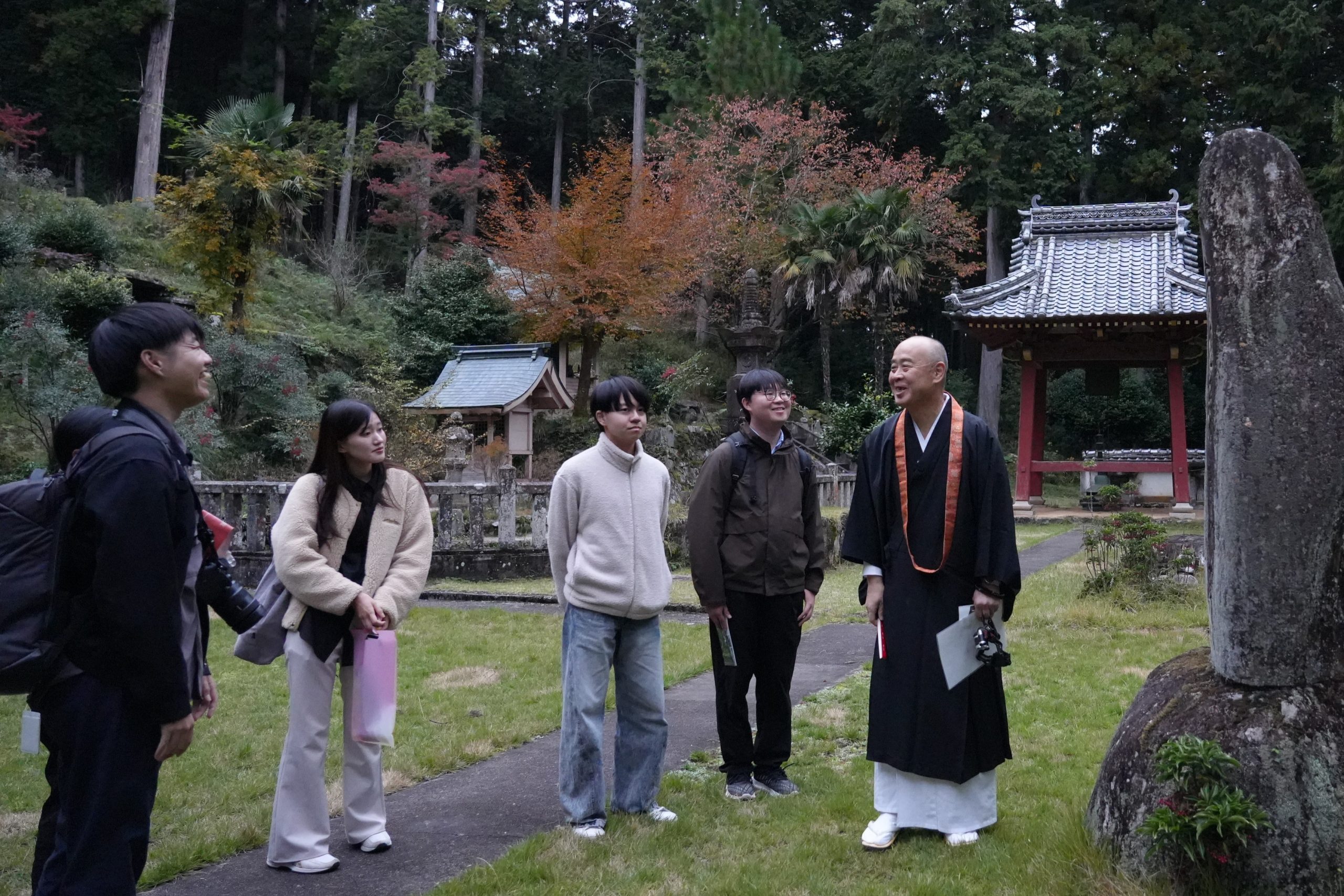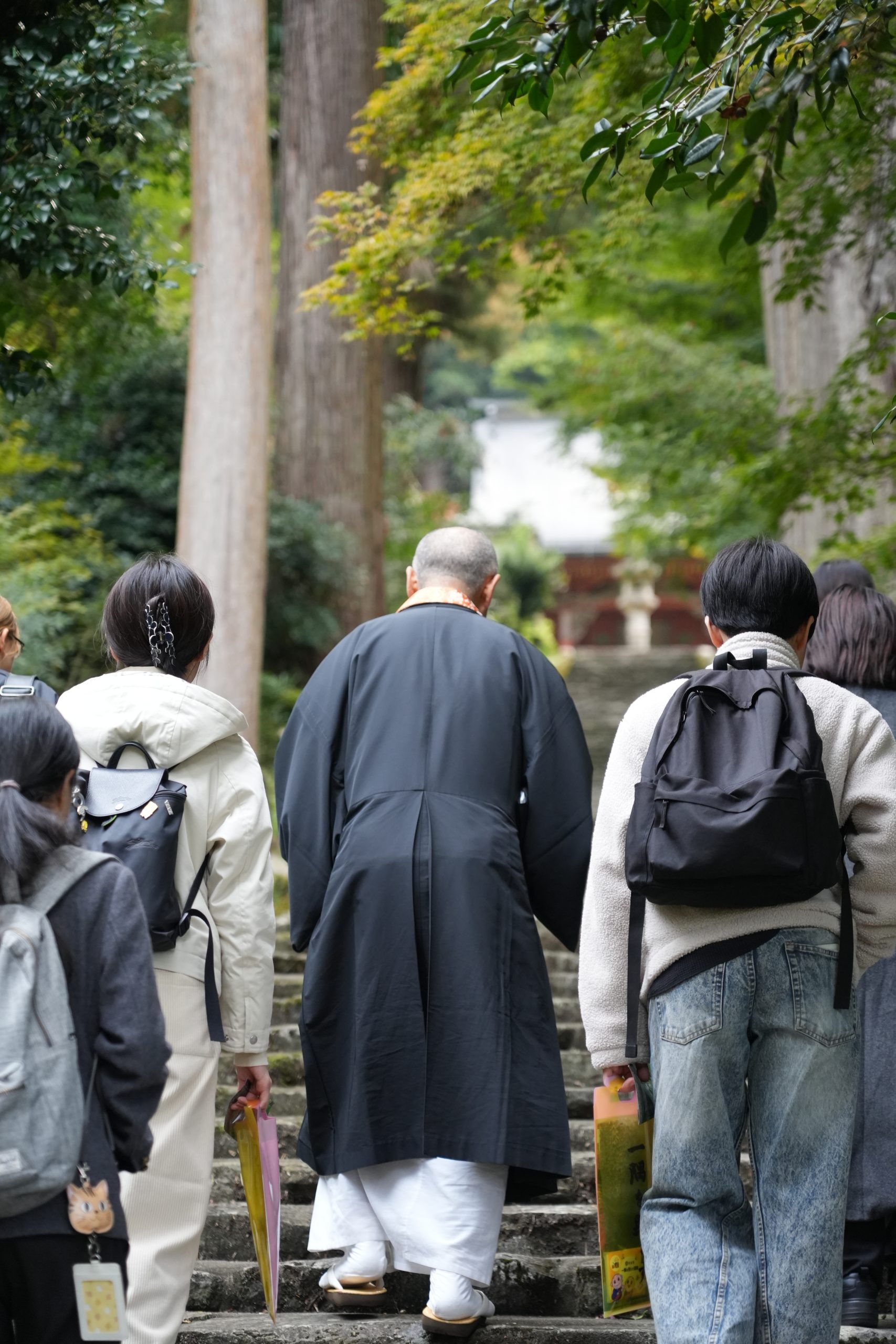 今回の訪問の最後、学生たちは先人たちの想いがこもる石段を下り、客殿を訪れました。