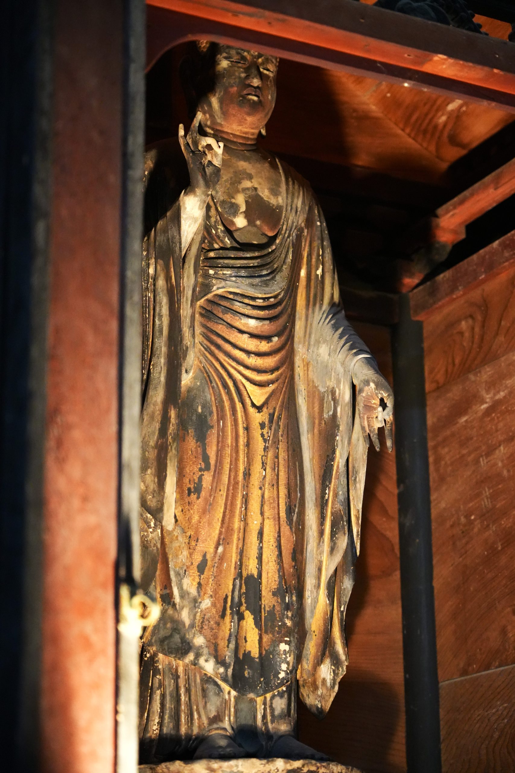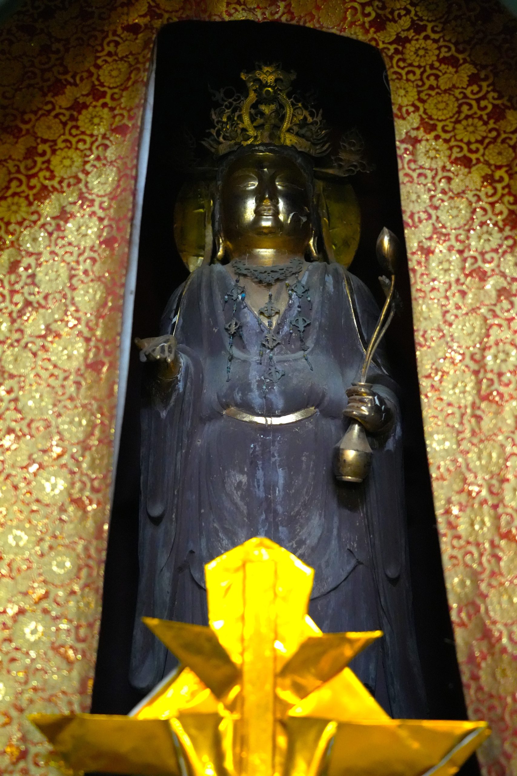 「御本尊様は非常に珍しい仏様として知られておりまして、学芸員の方によると、もともとは吉祥天様であったそうなのですが、後の時代に頭上にお顔を乗せて十一面観音様としているのだそうです。」