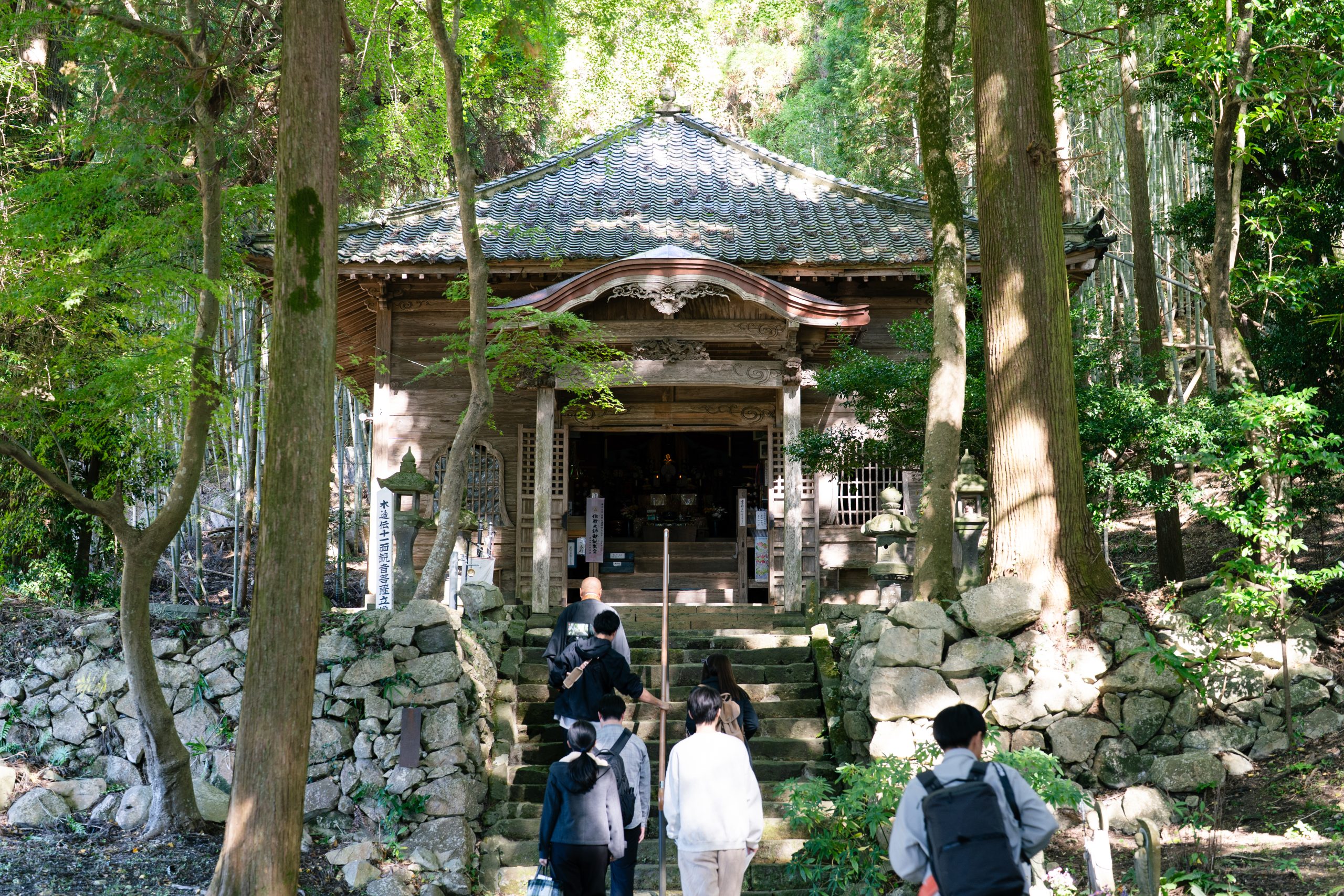 ご住職に続き、風そよぐ葉々の緑に彩られる本堂へ向かいます。