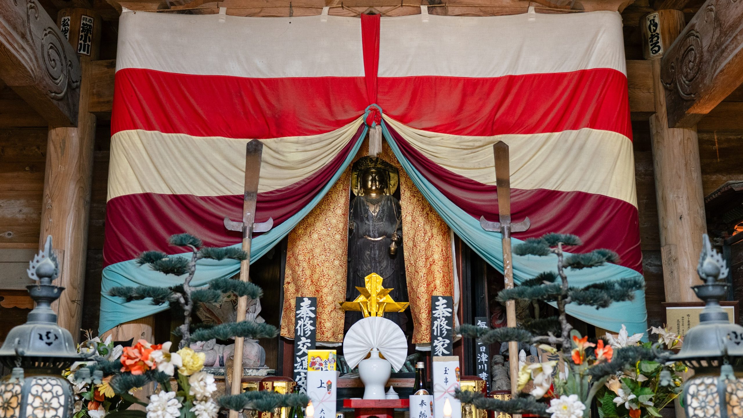 「こちらの釈迦如来様は秘仏でして、今回皆さんがお参りいただくということで特別に御開扉いたしました。本来ですと1年に1度、毎年1月18日に行われる初観音の際に御開扉をして、その凛々しいお姿を皆様にお参りいただいています。」