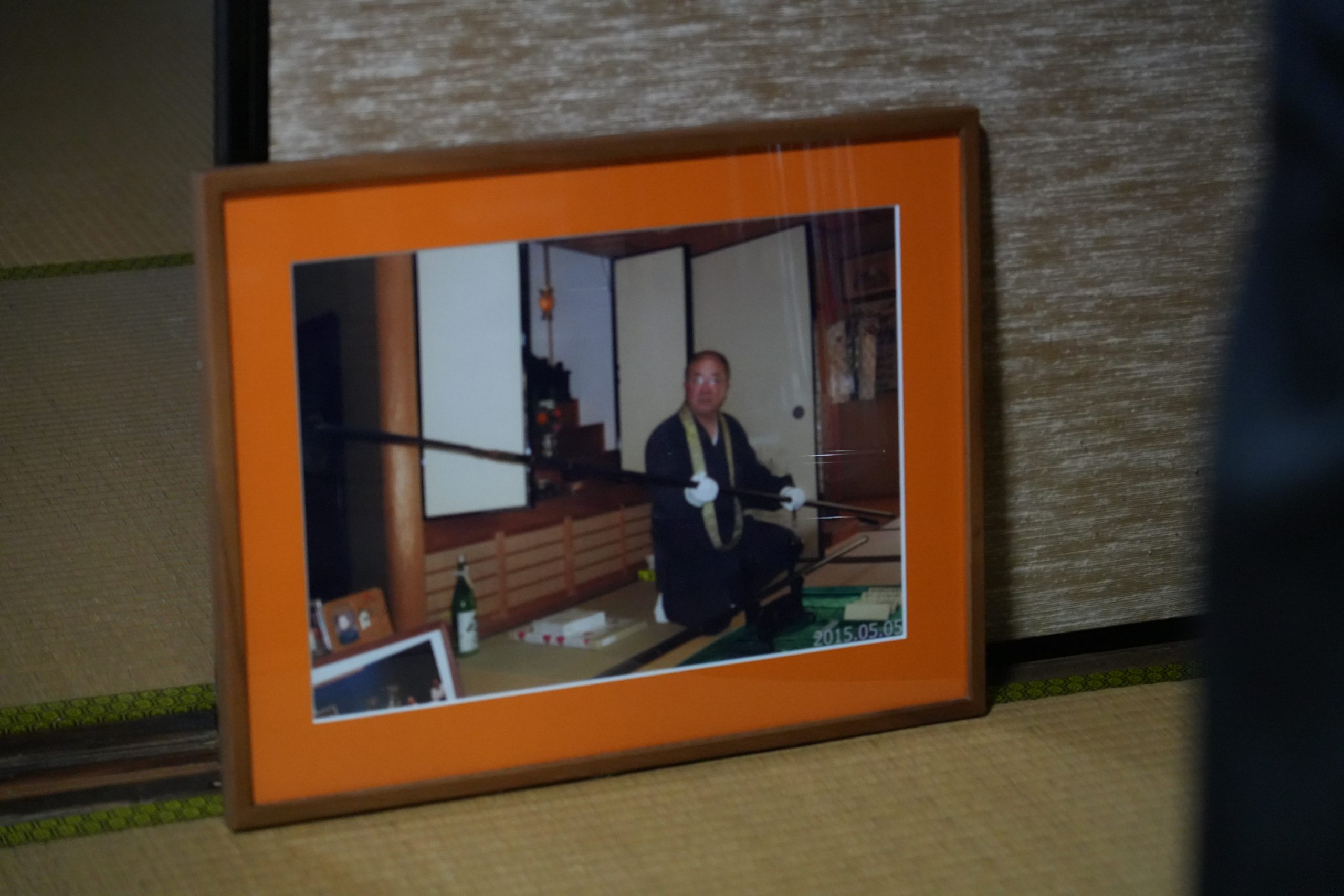 「哀川翔さんも熱心にご覧いただいておりましたね。こちらの写真がその時の写真です。実際に槍を持たせていただいたのですが、ずっしりと重く、槍の名手であった又兵衛の凄さを体感しました。」