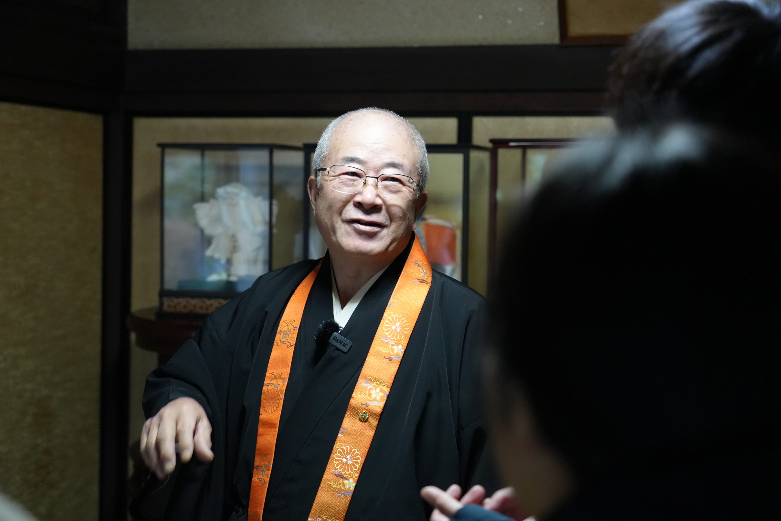 学生たちを福田寺の御住職を務める井上師が迎えます。